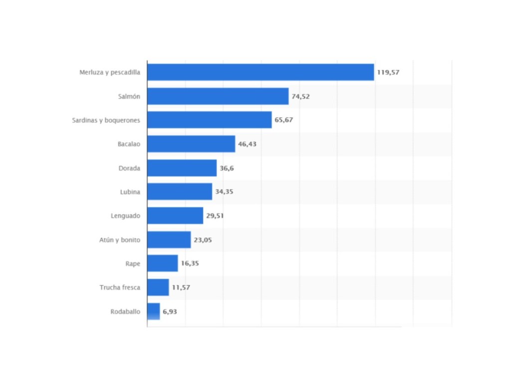 Aunque los datos no varían muchísimo, los más recientes y fiables para elaborar este ranking son los que aportan las dos fuentes mencionadas a lo largo del texto: Statista y los del Informe Anual de Consumo, que detallan ambos el consumo de pescado fresco en el ámbito del hogar dividido por especies. Como decíamos, son comunes las especies que aparecen pero, eso sí, hay una diferencia en el primer puesto.