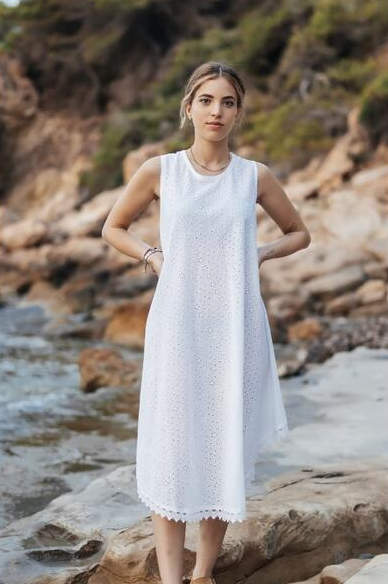 Este tipo de vestidos son imprescindibles para aquellas mujeres que no quieren ir ajustadas, las que buscan prendas livianas por las altas temperaturas y las que quieren comodidad ante todo. El color blanco es genial para aportar por el estilo ibicenco, y la forma apta para llevarlo tanto de día como de noche.