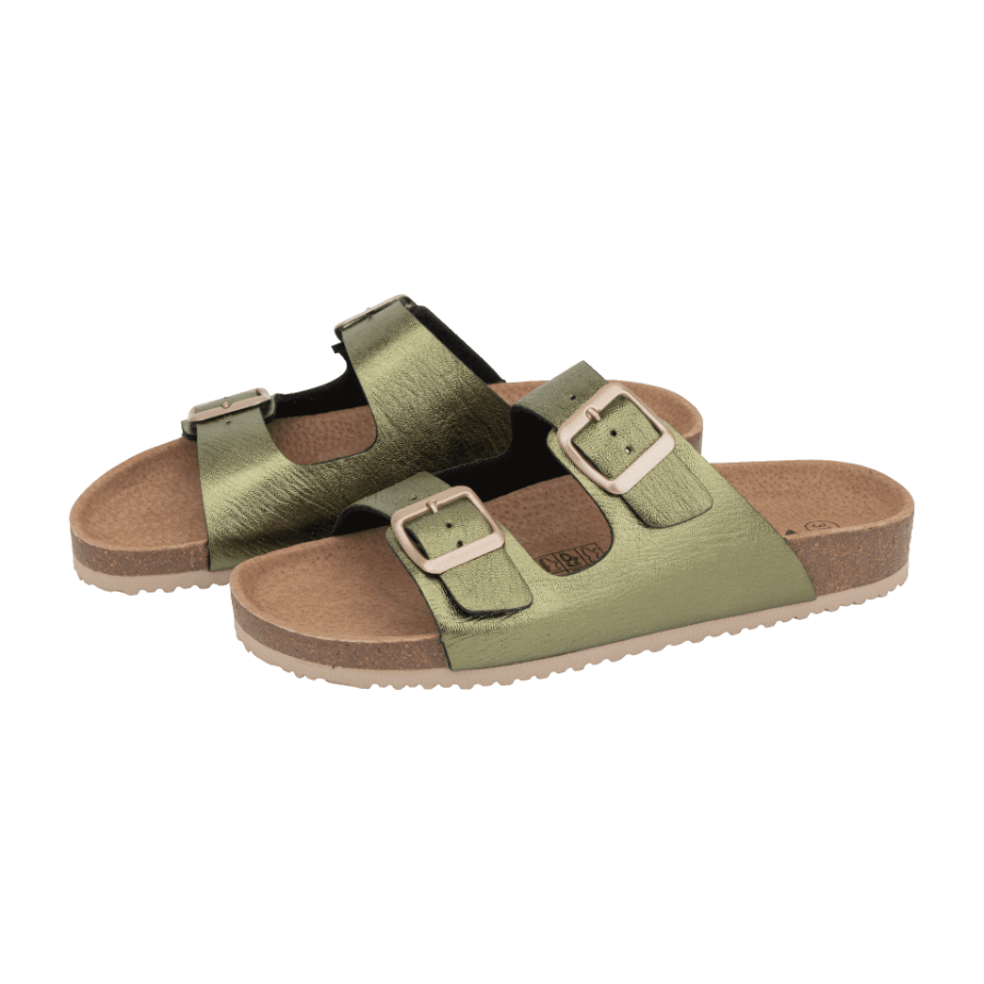Y es que sí, estas sandalias de Aldi están en tres colores veraniegos. Primero, en el plata de la primera imagen -perfecto para combinar con colores negros o azules-, el rosa metalizado de la imagen superior -que queda ideal con blancos, rosas y naranjas- y el color verde caqui metalizado de abajo -una opción estupenda para tonos tierra y beiges-.