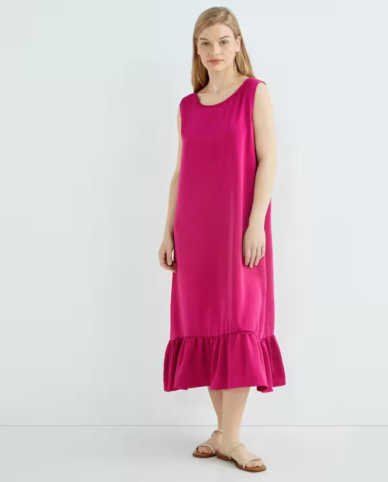 El fucsia es uno de los colores esenciales de la temporada de primavera/verano 2023, así que las rebajas son una ocasión más que clave para hacerte con un vestido de este tono. Este de la marca Zermatt que puedes encontrar en El Corte Inglés nos encanta por ese volante en el bajo (29,99 euros).