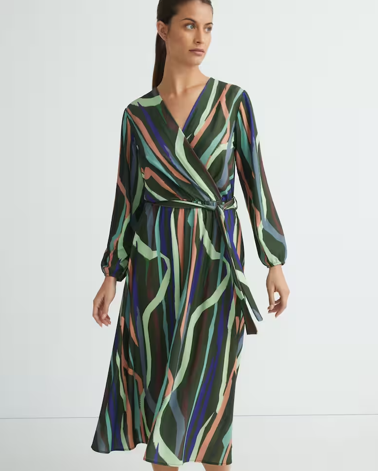Este vestido te quedará ideal si tienes mucho pecho, ya que al tener este corte cruzado disimula y estiliza mucho. Además, su largo midi es muy elegante y su estampado de ondas lo hace perfecto para un evento especial de verano. Es de la firma Zermatt y con las rebajas de El Corte Inglés se queda en 23,99 euros.