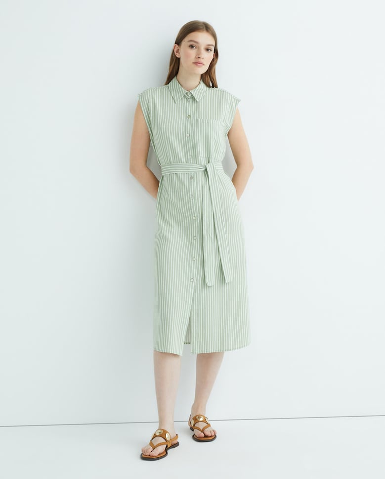 Los vestidos camiseros son una opción más que ideal para los días de oficina en verano. Son sofisticados a la vez que cómodos, y en este caso también es muy barato. Es de la marca Vero Moda y se puede encontrar en las rebajas de El Corte Inglés por 19,99 euros. Este modelo cuenta con un corte midi, manga caída, cinturón ajustable de tela y bolsillo en el pecho.
