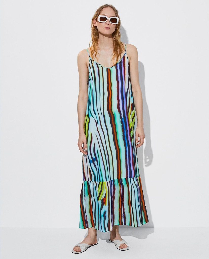 Esta opción de Parfois en las rebajas de El Corte Inglés nos parece más que idóneo para tus escapadas a la playa. Tiene un estampado arriesgado de rayas, pero la silueta es recta y muy ancha, lo que te proporcionará comodidad al máximo. Además, es muy ligero y fresquito (15, 99 euros).