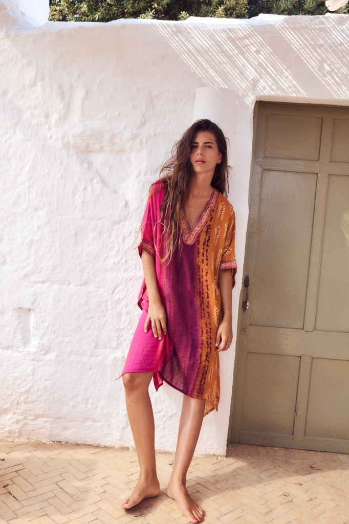 Para disfrutar de la última quincena del mes de agosto, nada mejor que un vestido tipo caftán tan bonito y elegante como el de la imagen de Zara. Holgado, ligero y un colorido súper alegre, este caftán cuenta con escote en pico, manga corta y bajo con aberturas laterales (29,95 euros).