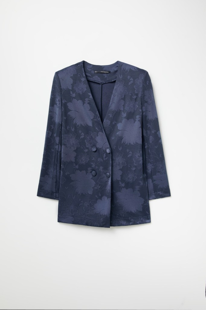 Si tienes un evento importante, esta camisa de Sfera en jaquard azul marino es para ti. Es bonita, cuenta con un diseño cómodo y ancho, un color que disimula y un estampado de flores que adoran las mujeres de +50 años. Es como llevar una blazer pero más ligera y sofisticada y por menos de 30 euros (29,99 euros).