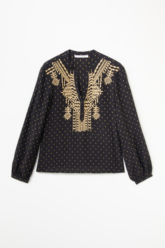Y para terminar, otra camisa de Sfera que vale menos de 20 euros y que es preciosa por su estampado bordado. Sus detalles bonitos marcan la diferencia, pero su diseño cómodo hace el resto (19,99 euros).
