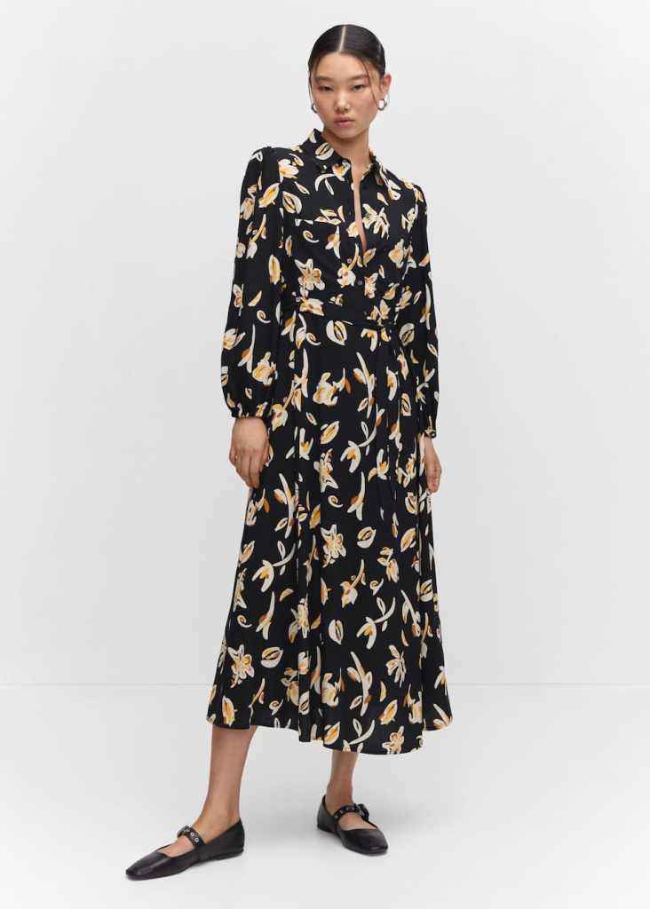 Por supuesto, no podía faltar en esta selección de Mango un vestido camisero, la silueta favorita de las mujeres de +50 años. Hacen tipazo porque disimulan todo y además son súper cómodos al tener diseños holgados y tejidos fluidos. En este caso, este vestido cuenta con un estampado floral sofisticado y un lazo a conjunto en la cintura por si te gusta ceñirla. Además, se trata de un modelo super barato (19,99 euros).