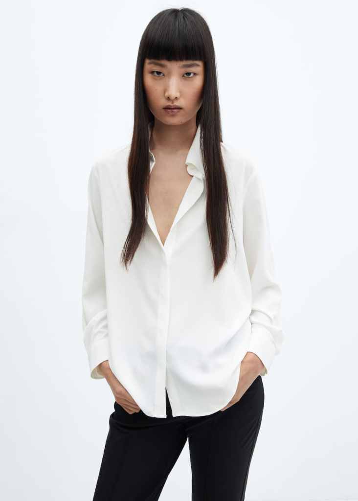 Básico entre los básicos de toda mujer, la camisa blanca encuentra múltiples posibilidades en Mango. Pero, sin duda, las que arrasan entre las mujeres de +50 años son las que están diseñadas con tejidos fluidos, como la de la imagen. Y es que, en otoño, se hace imprescindible tanto para la oficina como para eventos. Esta en concreto es súper económica (19,99 euros).