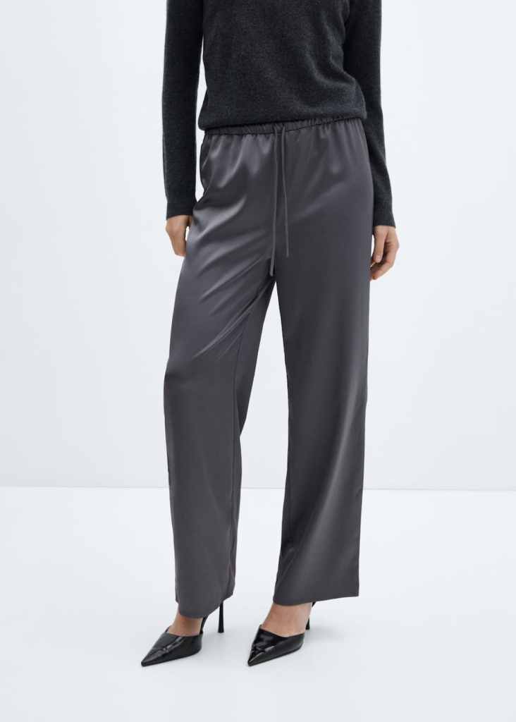 En Mango hay múltiples posibilidades de encontrar pantalones elásticos que hacen tipazo: desde los típicos de punto hasta este modelo súper sofisticado en un color gris satinado. Hemos pensado que son ideales para todas esas mujeres de +50 años que busquen un modelo cómodo pero elegante para sus ocasiones especiales, y además asequible (27,99 euros).