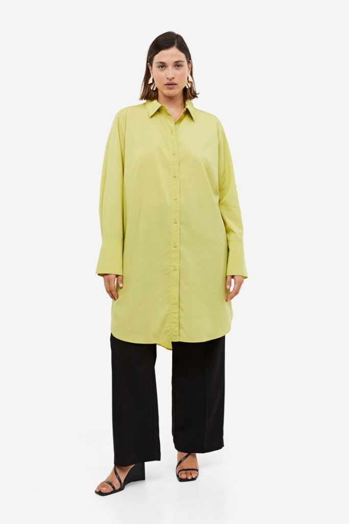 Los vestidos camiseros tienen también otro de los diseños más buscados por las mujeres de +50 años. Son, literalmente, una camisa más larga que se puede poner como vestido o como la imagen super, acompañando a unos pantalones. Su silueta nada ajustada hace que sea confortable, y ese tono verde amarillento es ideal para dar un toque de color al otoño. Este vestido de H&M también cuesta menos de 30 euros (27,99 euros).