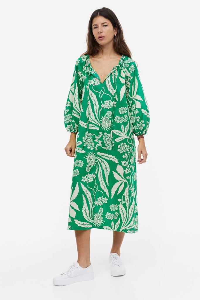 El veranillo de San Miguel azota el país con altas temperaturas, así que modelos como este vestido de flores de H&M pueden seguir siendo tus mejores aliados este otoño mientras esto ocurra. Su color verde es precioso para darle vida a tus looks, y su silueta ancha y cómoda con mangas abullonadas es ideal para las mujeres de +50 que busquen en máximo confort (29,99 euros).