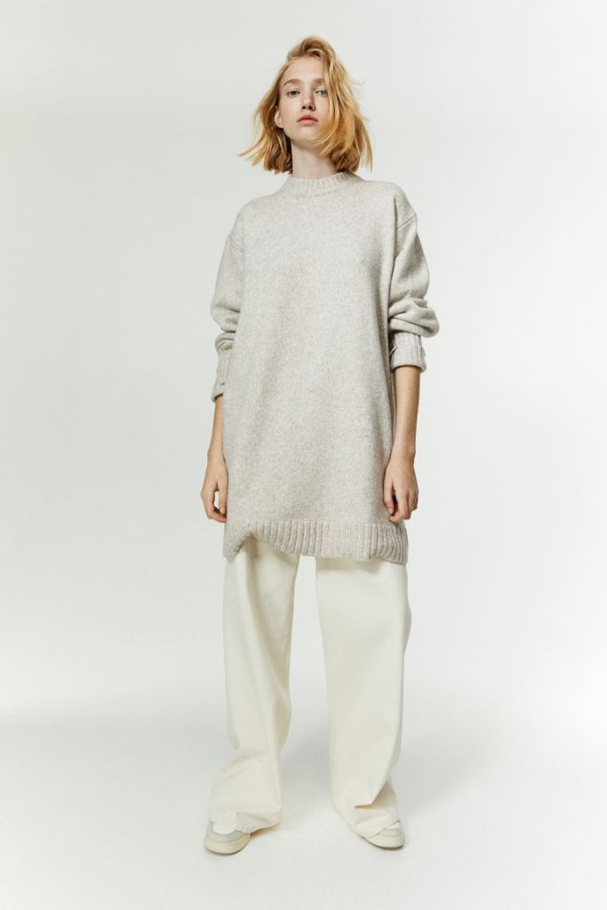 Aunque cuando lleguen las bajas temperaturas tenemos que estar preparadas, y los vestidos de punto son los más óptimos para ello. Este modelo en concreto de H&M cuenta con un color beige claro jaspeado que combina con todo, y su silueta nada ajustada lo hace perfecto para llevarlo en el día a día, tanto a modo de vestido como de jersey con pantalones (29,99 euros).