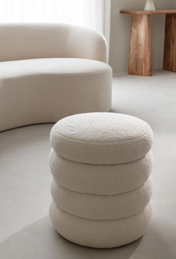 Está fabricado en madera contrachapada de pino y tapizado en tela de poliéster con un acabado suave en esa tela gustosa de borreguito a la que hacíamos referencia. Para su limpieza, el fabricante recomienda utilizar un paño seco y evitar productos químicos. Precio: 69,95 euros.