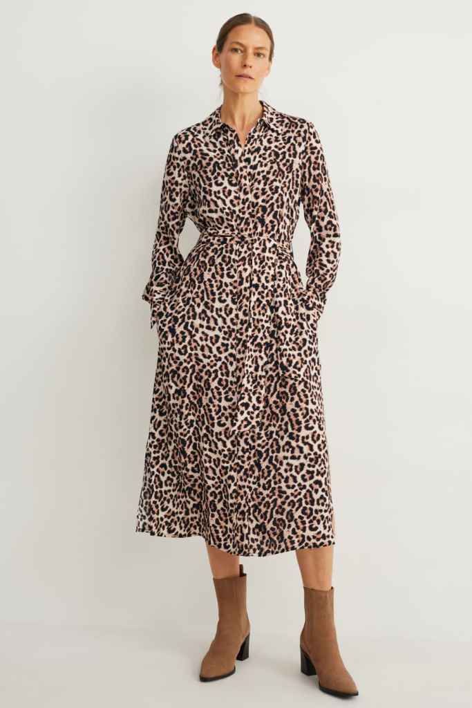 Si te gusta arriesgar a la hora de lucir estampados, este vestido suletecito animal print te encantará. C&A propone esta pieza con estampado de leopardo para las más atrevidas, aunque sin duda puedes rebajar este look con unas zapatillas negras, o elevarlo más con unos botines de tacón negros. En todo caso, a las mujeres +50 les encantará por su diseño camisero holgado, aunque cuenta con un cinturón para ajustarlo a la cintura (37,99 euros).