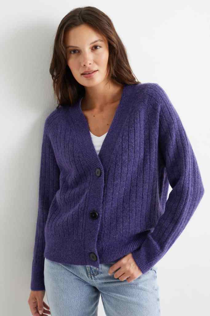 Y para finalizar, otro cárdigan sueltecito, pero esta vez en una tonalidad súper en tendencia, el morado. Este es otro de estos modelos de C&A que están arrasando en su Black Friday entre las mujeres +50 porque son calentitos, cómodos y están tirados de precio: cuesta menos de 20 euros y nos gusta para llevarlo con jeans, sobre vestidos o con mil combinaciones más al ser tan práctico (25,99 euros 19,99 euros).