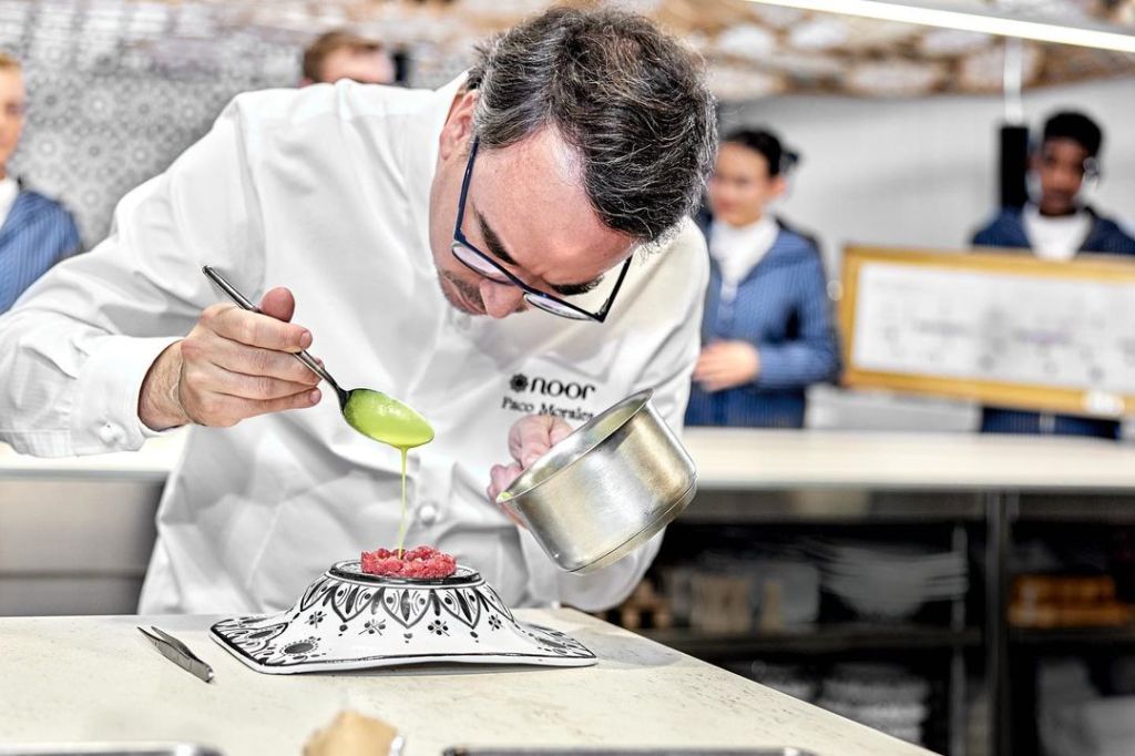 Michelín ha concedido su máxima distinción, la tercera estrella, a dos restaurantes españoles: el barcelonés Disfrutar, de Mateu Casañas, Oriol Castro y Eduard Xatruch, considerado por las listas internacionales como uno de los mejores restaurantes del mundo; y el cordobés Noor, del chef Paco Morales. Los dos restaurantes completan la lista de 15 establecimientos en nuestro país con tres estrellas, ya que los 13 que las tenían las mantienen.