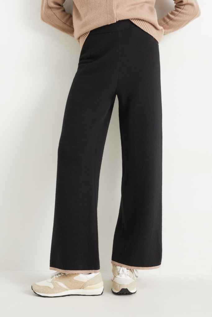 Si buscas la comodidad extrema a la vez que apuestas por looks súper calentitos, esta prenda de punto de C&A es para ti. Se tratan de unos pantalones de punto con una silueta extra ancha que aporta libertad de movimientos y que estiliza mucho. Además, al ser negros son muy versátiles y prácticos para llevarlos con un total look de punto negro o con jerséis de otros colores. Y, sin duda, sus mejores aliadas serán unas zapatillas para conseguir el confort total. Eso sí, estos están más elevados de precio (37,95 euros).