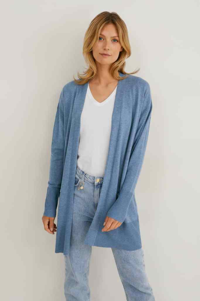Puede que esta sea la prenda de punto favorita de las mujeres +50. Sí, hablamos de cárdigans como este de C&A, que estiliza al ser largo y holgado además de ser calentito para soportar cualquier ola de frío que se precie. Con un tono azul ideal para el día a día, nos gusta para vestirlo junto a jeans y camisas, pero también sobre jerséis y faldas. En este caso, el cárdigan también es muy barato (12,99 euros).