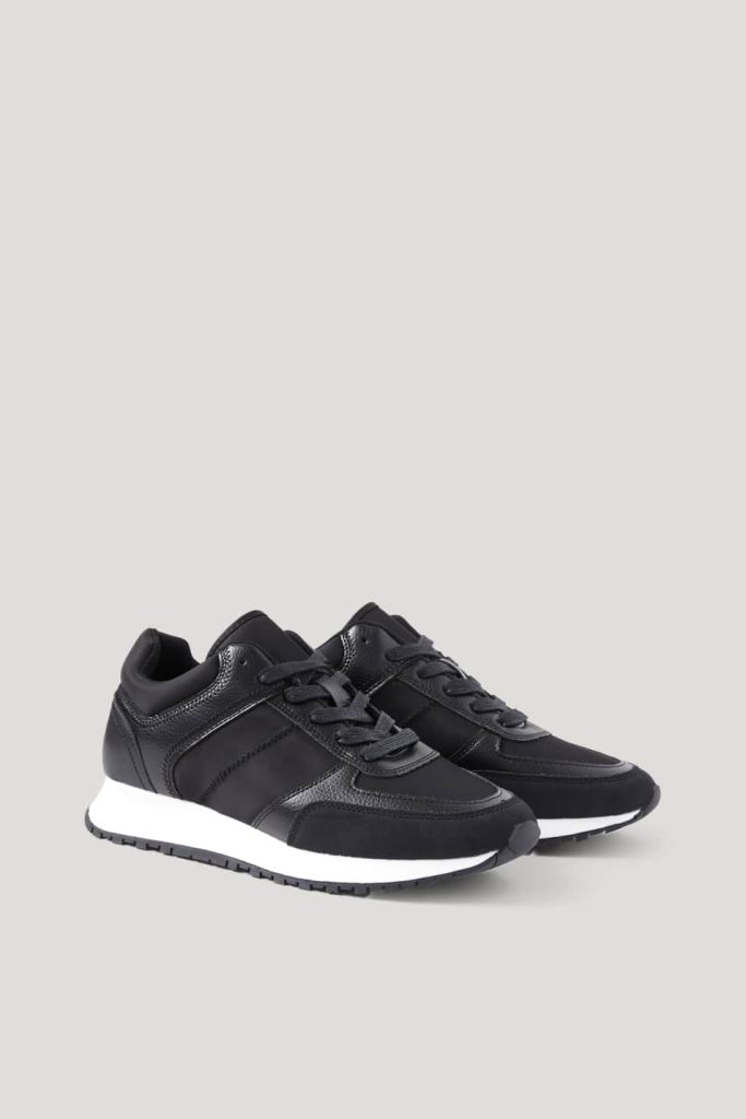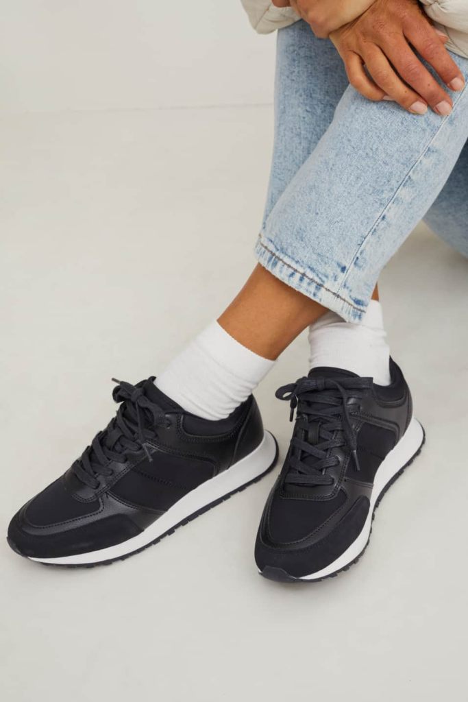 Pero es que las siluetas más concretas son también parecidas. Es decir, estas sneakers tan baratas tienen cordones, esos contrastes en diferentes materiales en color negro, la parta blanca hacia la suela e incluso a la puntera. Y, al igual que las de Geox, estas zapatillas de C&A quedan bien con todo.