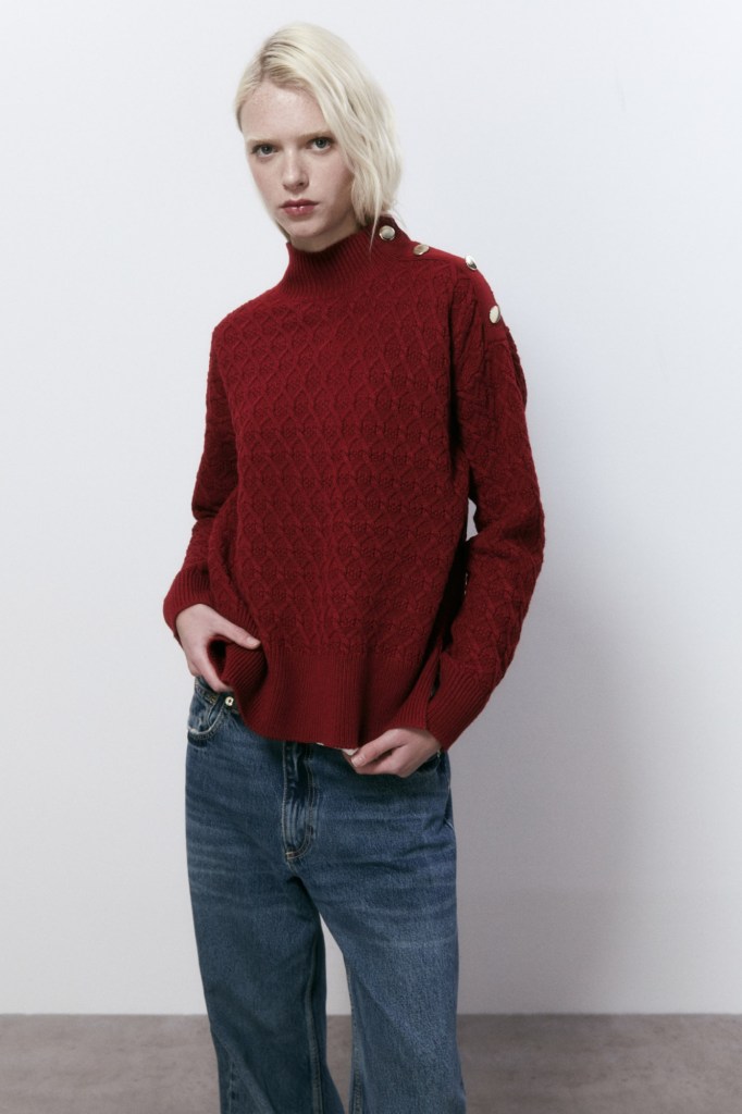 Jerséis de Sfera por menos de 18 euros: granate con cuello Perkins