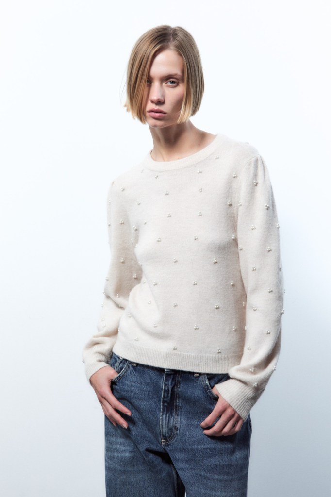 Jerséis de Sfera por menos de 18 euros: beis con detalle de perlas