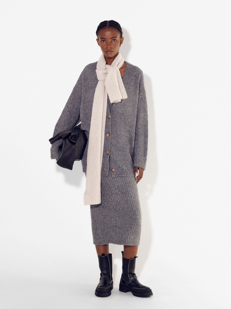 Estos conjuntos de punto no solo están disponibles con pantalón, porque las amantes de las faldas también encontrarán opciones tan ideales como esta de Parfois, en gris clarito. En este caso, se trata de un cárdigan bastante holgado y larguito (35,99 euros) y una falda de punto a conjunto también cómoda (32,99 euros). Este conjunto, además de ser calentito y confortable, también puede ser una opción arreglada, por ejemplo, para una cena con amigas. Si lo combinas con unas botas altas negras, un bolso mono y elegante y un abrigo clásico, te puede quedar un lookazo.