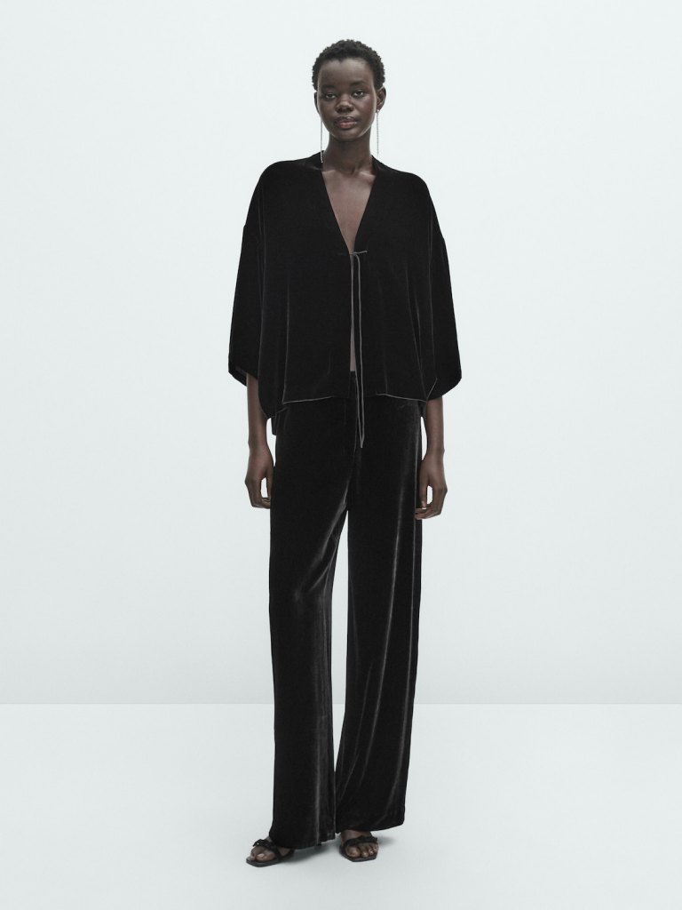 Cuando hablamos de Navidad, las prendas que más destacan son las de lentejuelas, las metalizadas o las que tienen brillos y, por supuesto, las de tejido de terciopelo. Por eso, cuando hemos visto este conjunto de camisa y pantalón de Massimo Dutti de este material, no hemos podido evitar pensar que será un set que agoten las mujeres +50. Y no solo porque tenga este tejido que es festivo a la vez que sutil, también porque se trata de una propuesta de fiesta elegante que estiliza porque cuenta con siluetas anchas. Te contamos con más detalle a continuación.