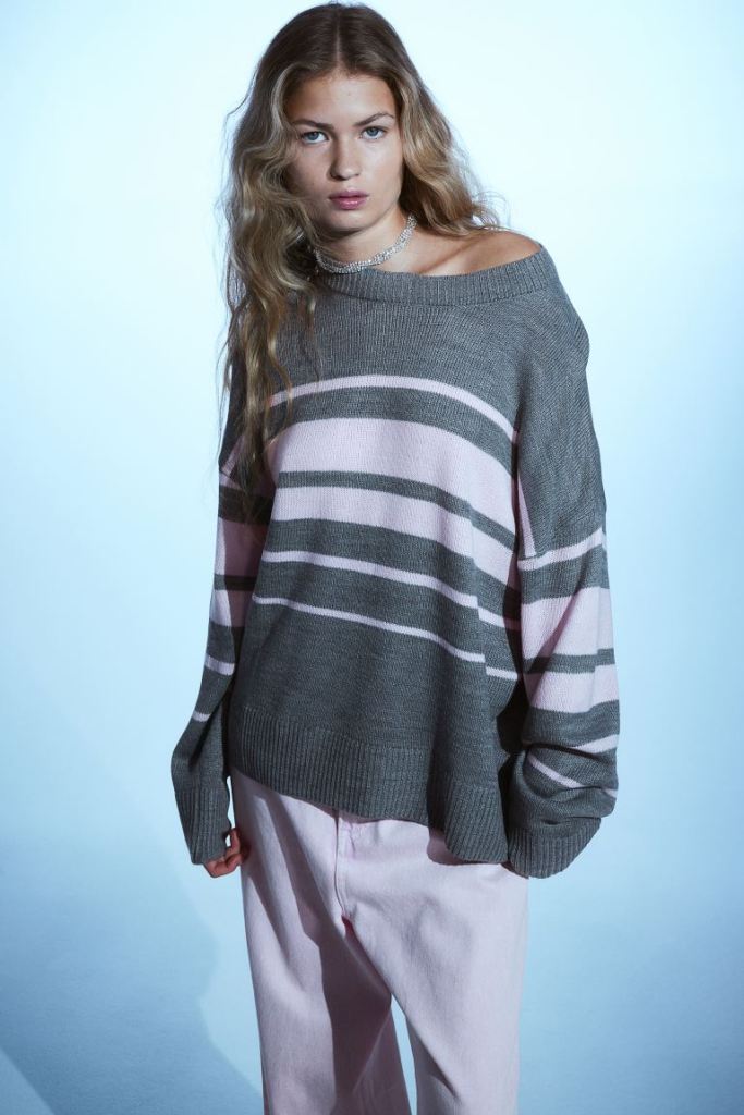 No podía faltar en nuestra selección de jerséis sueltecitos de rebajas uno con estampado de rayas. La propuesta de H&M con este print es súper amplia para ir calentita en invierno, pero este modelo nos ha gustado porque -este sí que sí- está más que tirado de precio. Esta prenda de punto de H&M tiene una rebaja del 31% y cuesta menos de 11 euros (15,99 euros 10,99 euros). Y, de nuevo, lo hemos cogido también porque es un modelo de corte ancho con cuello redondo ribeteado en canalé, hombros marcadamente caídos y remate acanalado en puños y bajo.
