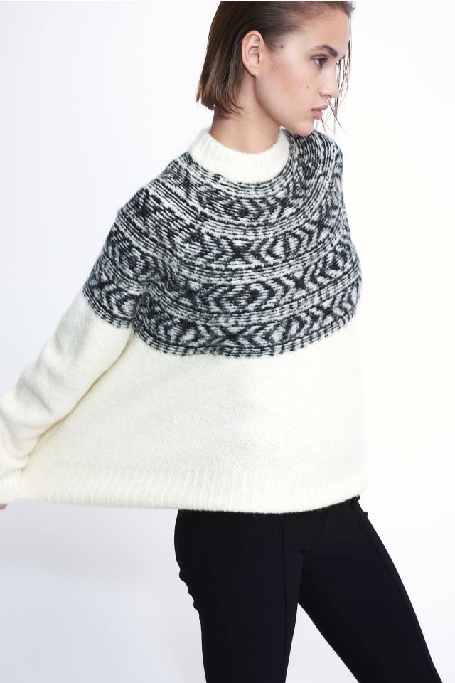 Y como colofón final, un jersey sueltecito súper tendencia en invierno entre las mujeres que esquían: uno con tendencia alpina y este tipo de estampados de la imagen. Está creado en un punto jacquard suave con lana y lana de alpaca en la trama y, de nuevo, cuenta con un corte amplio con mangas raglán y cuello redondo. En este caso, el descuento de estas rebajas anticipadas de H&M hacen que sea asequible y que cueste menos de 15 euros (29,99 euros 14,99 euros).