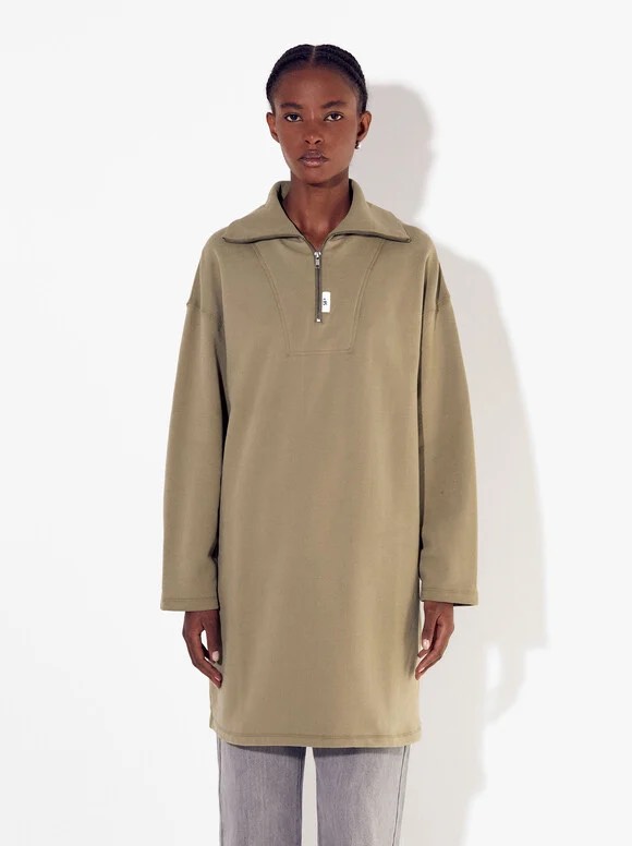 Aunque si buscas la comodidad completa, nada mejor que este tipo de vestidos sueltecitos. Este en concreto, es un modelo estilo sudadera con un largo por encima de la rodilla y con un diseño oversize holgado y muy confortable. Como se aprecia en la imagen, es ideal para crear estilismos casuales con zapatillas gracias a su diseño sport con ese cuello polo con cremallera. Y este modelo económico de las rebajas de Parfois pega con muchos colores al estar teñido en un versátil tono beis (35,99 euros 25,99 euros).