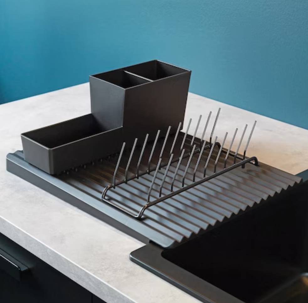 - Solución modular: Ikea tiene en su catálogo una solución modular que está bien por varios motivos: es económico, ya que la versión que incluye el soporte para utensilios y portaplatos no supera los 9 euros; es personalizable, porque puedes comprar solo la bandeja; y es práctico, porque se guarda y se limpia de forma muy fácil.