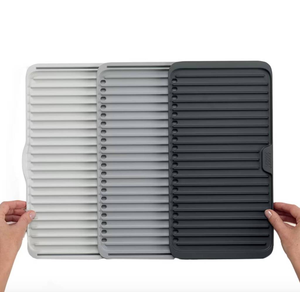 - Tapete escurridor: la solución más económica y menos invasiva es elegir un tapete escurridor como este de Metaltex que está a la venta en Alcampo por menos de 8 euros. Fabricado en microfibra de color gris, mide 45 x 40 cm.