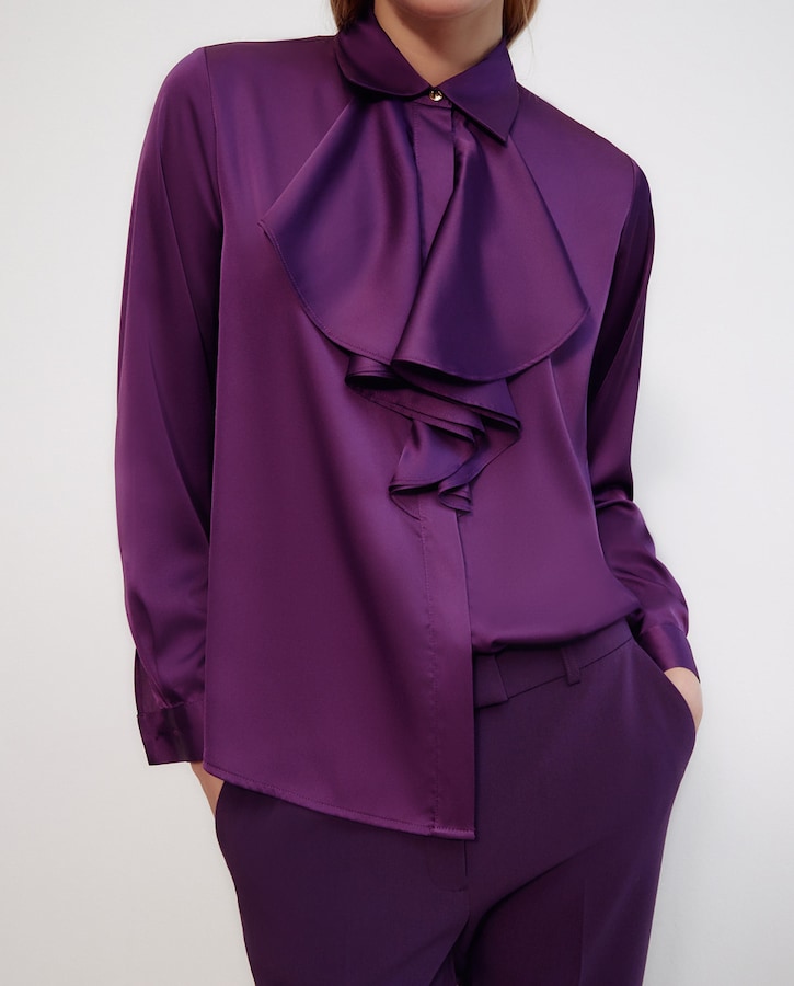 Como ya hemos ido explicando, al ser una prenda elegante y femenina, nos parece que queda genial tanto en estilismos de diario como para eventos más señalados. Aunque hay modelos satinados que aman las mujeres +50 y que están especialmente pensados para ocasiones más especiales, como esta camisa de volantes de El Corte Inglés. Con un color morado ideal, una silueta amplia con tejido de brillo y volantes en el pechos, nos parece una prenda sofisticada y preciosa para llevar incluso en bodas, bautizos y comuniones de primavera. Y como está todavía de rebajas, se queda a un precio muy asequible (49,99 euros 29,99 euros).