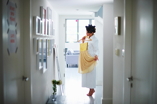 En cuanto a los tejidos, los vestidos de mañana suelen ser confeccionados en telas ligeras y fluidas, como la seda o el satén. Estos tejidos permiten que la invitada se sienta cómoda en todo momento, brindándole un aspecto elegante y delicado.