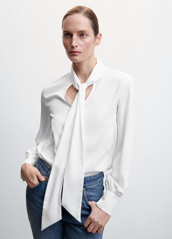 Este básico imperecedero de nuestro armario es protagonista en looks primaverales con falda y pantalón. En este caso, se trata de una camisa blanca de Mango Outlet que resulta súper elegante por su lazada en el cuello, larga y con un toque femenino. Así que no nos extraña que sea objeto de deseo entre las mujeres +50, porque además es bastante holgada y fluida. En este caso, gracias al descuento del 30% de esta tienda se queda súper barata (22,99 euros 15,99 euros).