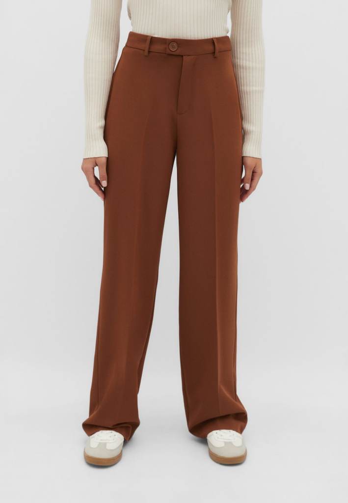 Aunque a priori puedas pensar que estos pantalones anchos están más indicados para looks desenfadados y casuales, modelos de vestir como este de Stradivarius demuestran que puedes crear estilismos formales con ellos. Por ejemplo, al ser de este color teja quedará ideal con una blazer beis y unos mocasines a conjunto. Aunque las mujeres +50 también se lo ponen con jerséis y zapatillas blancas. Este elegante pantalón que favorece por su pernera recta y nada ajustada tiene una rebaja del 50%, así que se queda tirado de precio al pasar de costar casi 20 euros a menos de 10 (19,99 euros 9,99 euros).