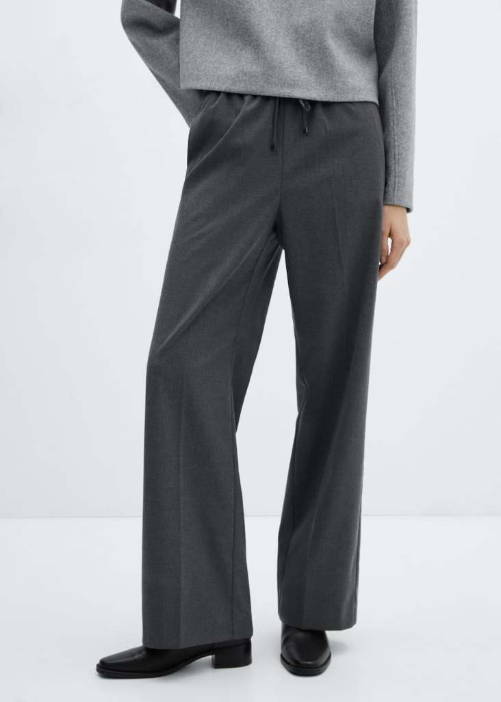 Estamos seguras de que estos pantalones con pernera ancha les encantarán a las mujeres +50. En primer lugar, por su color gris oscuro que lo tiñe, que pega absolutamente con todo: con el jersey superior, con una camisa blanca... Pero también gustará por su diseño holgado. Cuenta con un tejido fluido con diseño largo y nada ajustado que estiliza un montón. Además, al tener tiro alto y cintura elástica con cierre de lazo, también resulta cómodo. Este elegante pantalón gris de lo nuevo de Mango, apto tanto para ir a la oficina como para ocasiones más especiales, cuesta menos de 30 euros (29,99 euros).