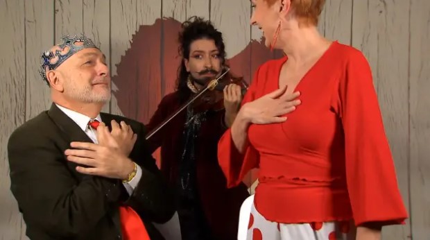 El madrileño entró en el restaurante con una guitarra para cantarle dos canciones a su pareja de la noche: "Una semi saeta y otra dedicada a todos los comensales".
