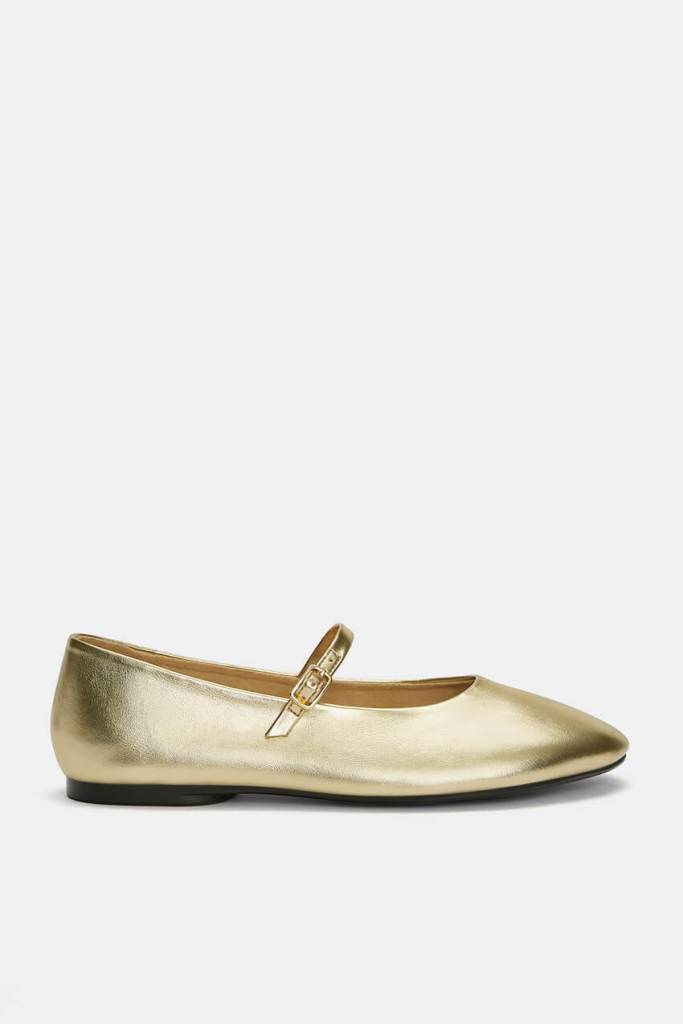 Y para acabar esta selección de calzado en tendencia para primavera 2024 de Pull&Bear que triunfa incluso entre las mujeres +50, encontramos estas merceditas que corroboran nuestra premisa. Son básicamente unas bailarinas planas con punta redonda y silueta clásica, pero que cuentan con ese cierre mediante hebilla en la tira del empeine. Al ser doradas, nos parecen súper elegantes y ponibles de la mañana a la noche. Además, estos tonos metalizados se siguen llevando muchísimo. Y de nuevo, están tiradas de precio (25,99 euros).