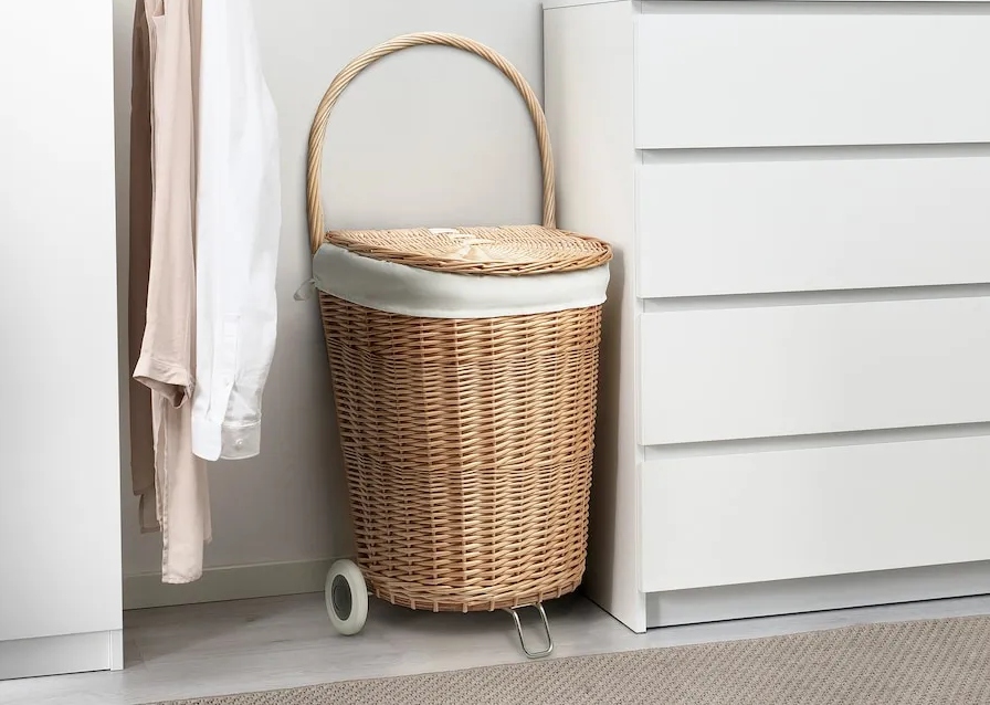 TOLKNING es una cesta hecha con fibras naturales que evocan un ambiente acogedor al hogar. Además, el hecho de que lleve ruedas lo hace aún más cómoda a la hora de hacer la colada. Es ideal para llevar la ropa a una lavandería automática o un cuarto de la lavadora compartido. Su precio es de 59,99€.