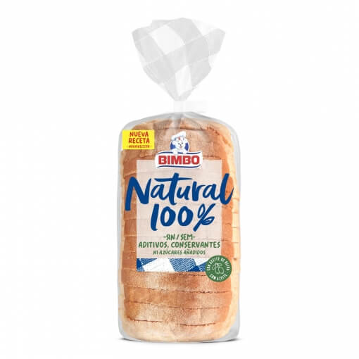 Se trata del Pan de Molde Bimbo Natural 100% Blanco, una innovadora receta que se destaca por su simplicidad y pureza en ingredientes. Elaborado únicamente con harina, agua, levadura, aceite de oliva, una pizca de sal y masa madre, este pan no contiene conservantes, aditivos ni azúcares añadidos.