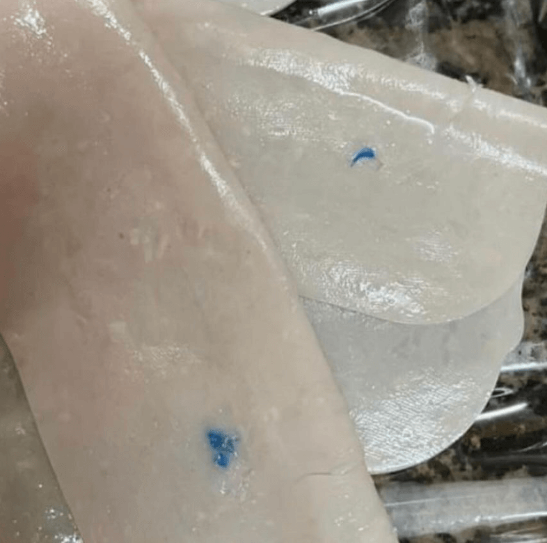 El influencer nutricional ha recibido diariamente mensajes con fotografías de restos de plástico azul encontrados en productos, especialmente en cárnicos y congelados. Las imágenes muestran desde pequeños trozos apenas perceptibles hasta fragmentos más grandes, potencialmente peligrosos si son ingeridos.