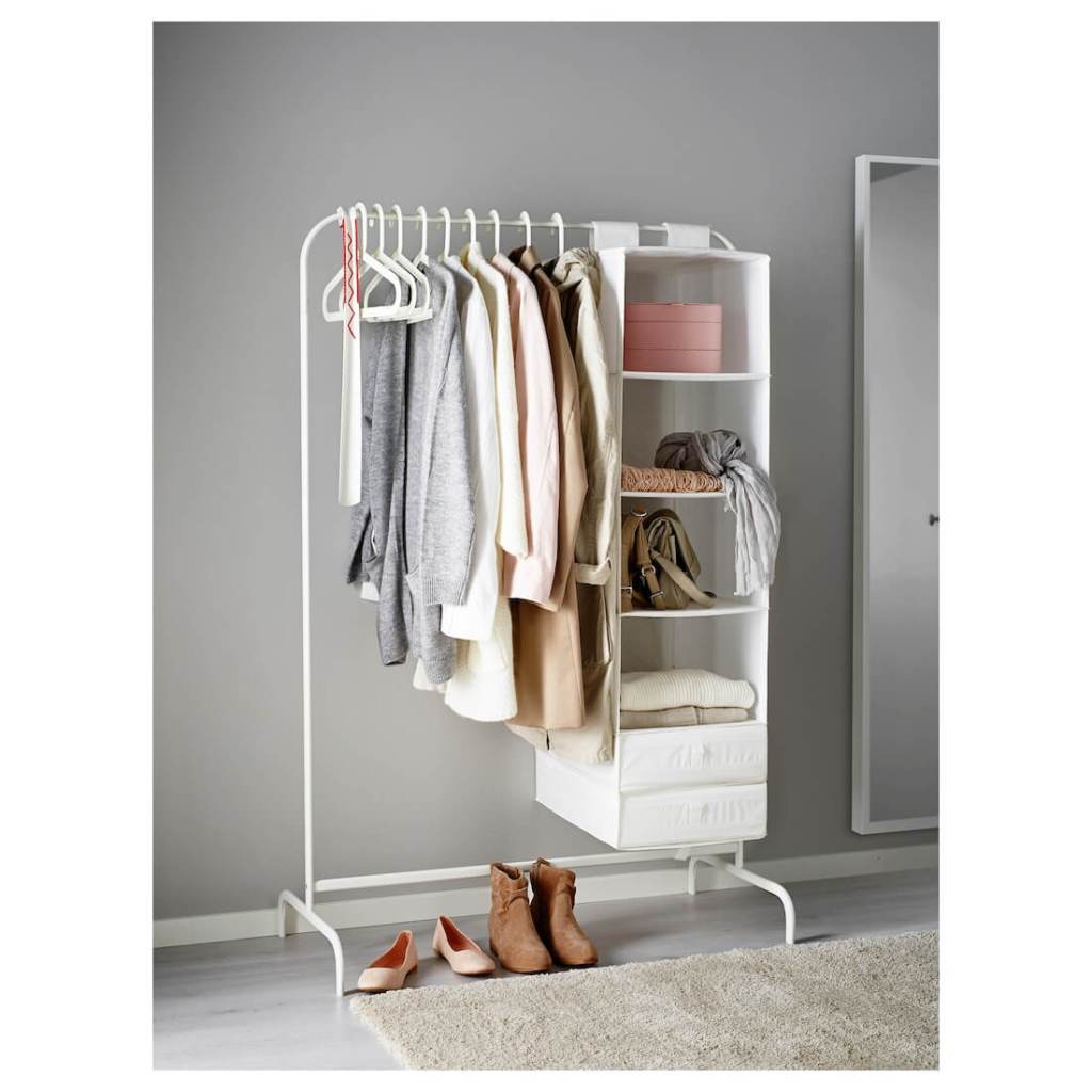 Y para acabar, si no tienes suficiente espacio en el armario puedes colocar un burro compacto, o en vez de apostar por un aparatoso armario que ocupa más este producto estrecho es perfecto para combinar con estanterías y otras cómodas y muebles con poco fondo. Este burro de Ikea que está tirado de precio (9,99 euros) es ideal para colgar más ropa en un dormitorio pequeño, pero a su vez puedes introducir incluso más espacio de almacenamiento si colocas en é un organizador colgante, como en la imagen.