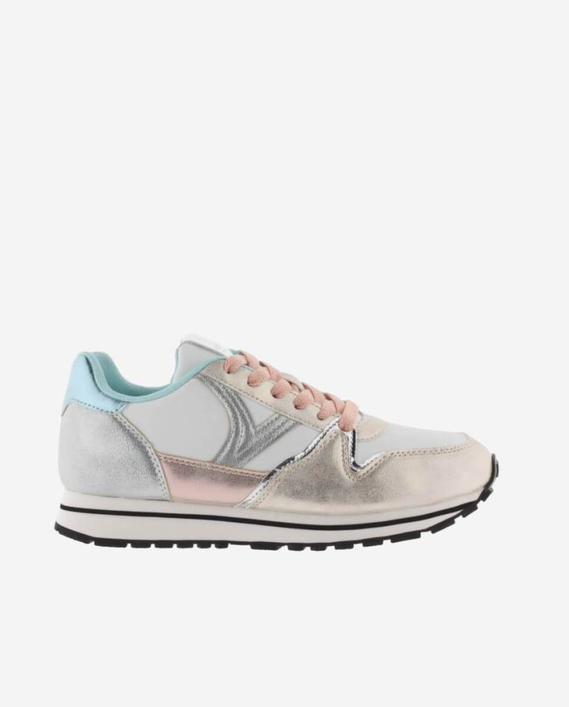 Los tonos metalizados siguen muy de moda, y firmas como Victoria lo saben. Por eso proponen zapatillas como esta de la imagen, que ya hemos visto a alguna que otra mujer +50. Esta sneaker de nylon en combinación con diferentes piezas sintéticas metalizadas resulta ligera y cómoda tanto para llevar en el día a día con una camisa blanca y una falda denim, como para lucirla de noche con un pantalón palazzo negro (65,90 euros en El Corte Inglés).