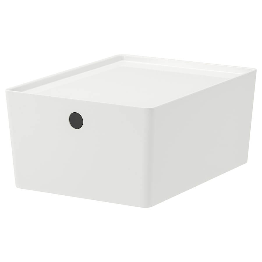 Si buscas algo más compacto para guardar y clasificar por tipología las distintas prendas o accesorios de tu armario en las baldas, estas nuevas cajas de Ikea con tapa son una buena opción. Por un lado, son fáciles de extraer, y por otro se pueden apilar recipientes de diferentes tamaños, ya que están diseñados para encajar entre sí. Estas cajas que también utiliza Marie Kondo para mantener el orden en el armario cuestan nada y menos (9,99 euros).