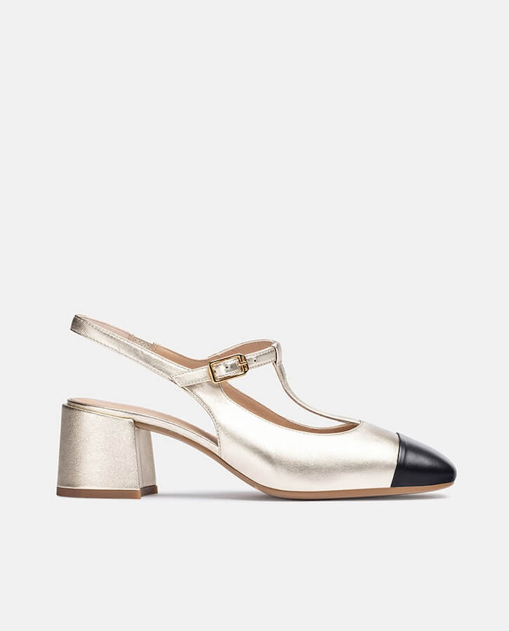 Y como última propuesta, un zapato con tacón sensato que está súper de moda en la primavera 2024: este tipo bicolor que triunfa entre las francesas. Super chic y femenino, este modelo de Unisa cuenta con un color dorado súper propio para eventos y con el detalle de la puntera en negro a contraste. Estos zapatos de salón destalonados cuentan con punta cuadrada y tira en el empeine con hebilla metálica que los hacen más cómodos al ir súper sujetos. En este caso, valen 129,90 euros en El Corte Inglés.