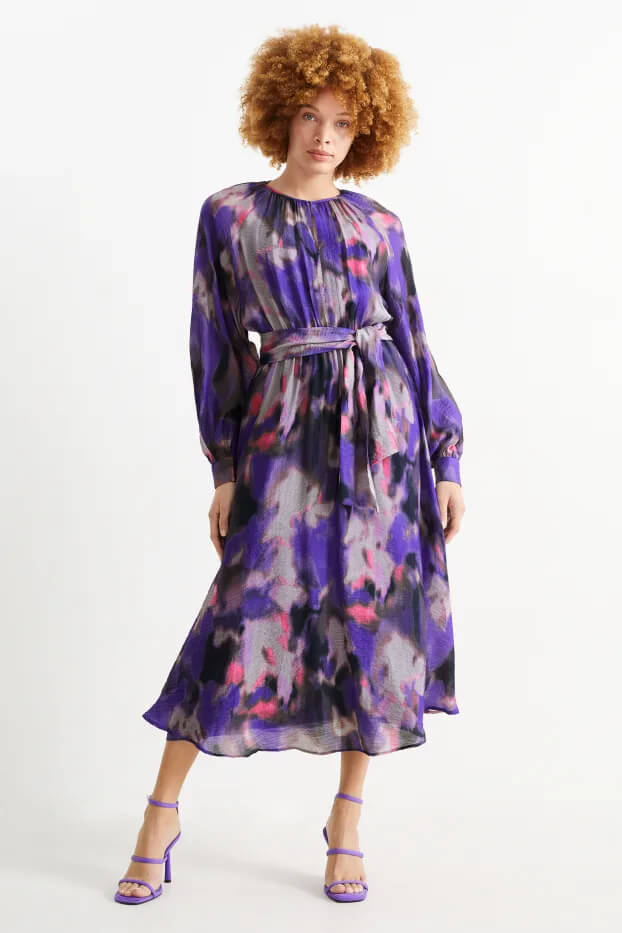 Dar color y alegría al primavera es posible con estampados de flores como el de este vestido sueltecito de C&A. Su print maxi floral en tonos lilas, morados y rosas pega con unos botines beis como los de la imagen, pero también con unas zapatillas color crudo para el día a día. De nuevo, cuenta con un diseño ancho con aberturas en los laterales que enamorará a las mujeres +50, pero que se puede ajustar a la cintura con un lazo a juego. Además, este modelo es súper barato.