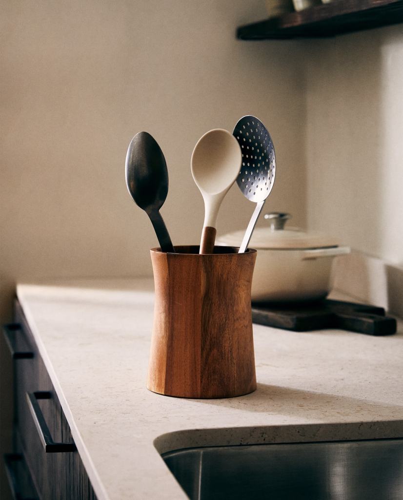 Aunque estas bandejas no son la única opción para organizar los utensilios de cocina, pues incluso podemos guardarlos fuera de los cajones. Prueba de ello son estos botes como este de Zara Home (25,99 euros), que aúnan funcionalidad y diseño y que también usa la experta en orden Marie Kondo. Como ves, quedan ideales sobre la encimera, sea cual sea el estilo de tu cocina. Estos los emplea para guardar utensilios más grandes, como cucharones o espátulas.