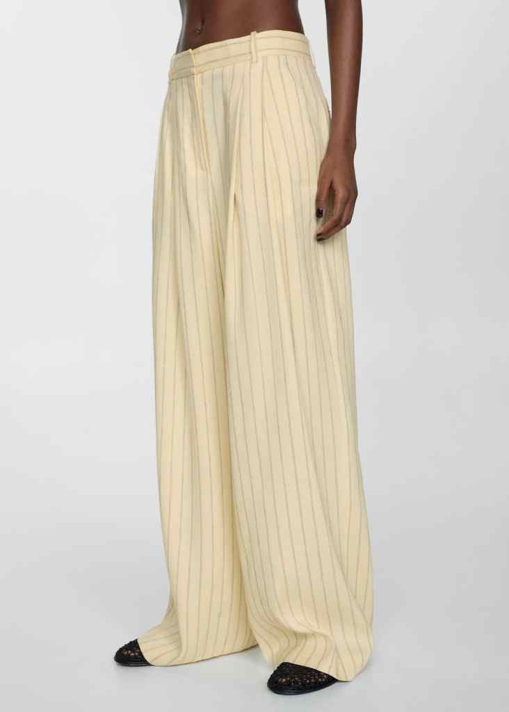 Para las amantes de los modelos con pernera extra ancha, este pantalón súper holgado de Mango será ideal. Es confortable por esa amplitud, y además estiliza al tener las rayas verticales. Al ser un print bastante formal y clásico, lo vemos tanto para eventos como para ir a la oficina combinado con prendas y accesorios negros. Y como es de lino es súper fresquito incluso para llevarlo en verano (69,99 euros).