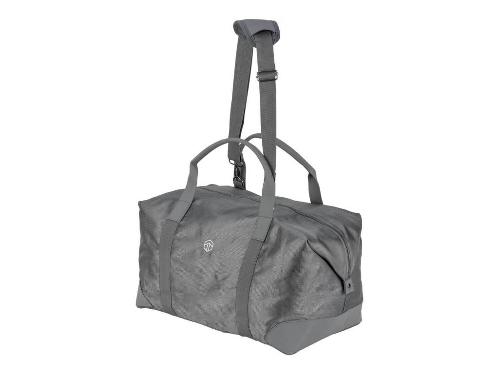 Centrándonos en la bolsa de viaje de Lidl protagonista de este artículo, se trata de un bolso grande de estilo deportivo que cuenta con una capacidad de carga máxima de 7 kilos. Más que suficiente para el equipaje que solemos llevar para un fin de semana o para una escapada exprés en avión. Como se aprecia en las imágenes aquí presentes de este producto, tiene tanto unas prácticas asas de mano para un fácil transporte como una correa para el hombro ajustable y extraíble con almohadilla móvil para poder llevarla también como bandolera. En cuento al diseño, la encontramos en negro y gris, y se caracteriza por su compartimento principal con cremallera bidireccional.